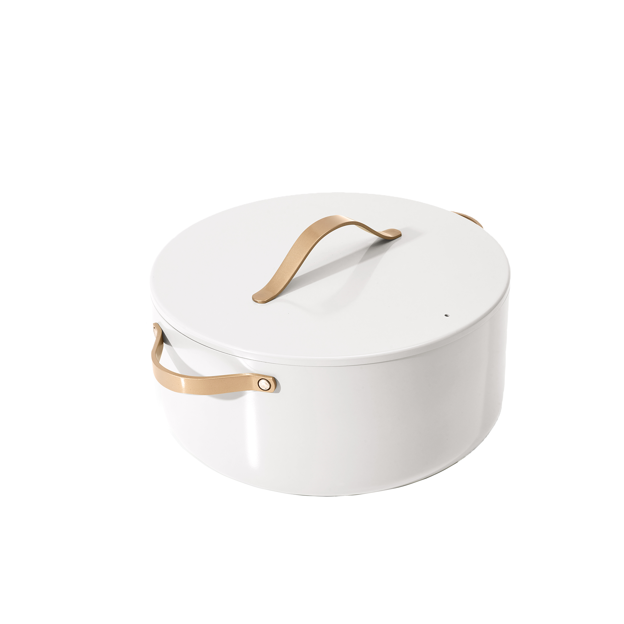 Our durable, double-riveted gold handles are designed to stay cool and fit comfortably in your hand, and our ceramic non-stick coating is scratch-resistant and free from Forever Chemicals for safe cooking for your friends & family.
